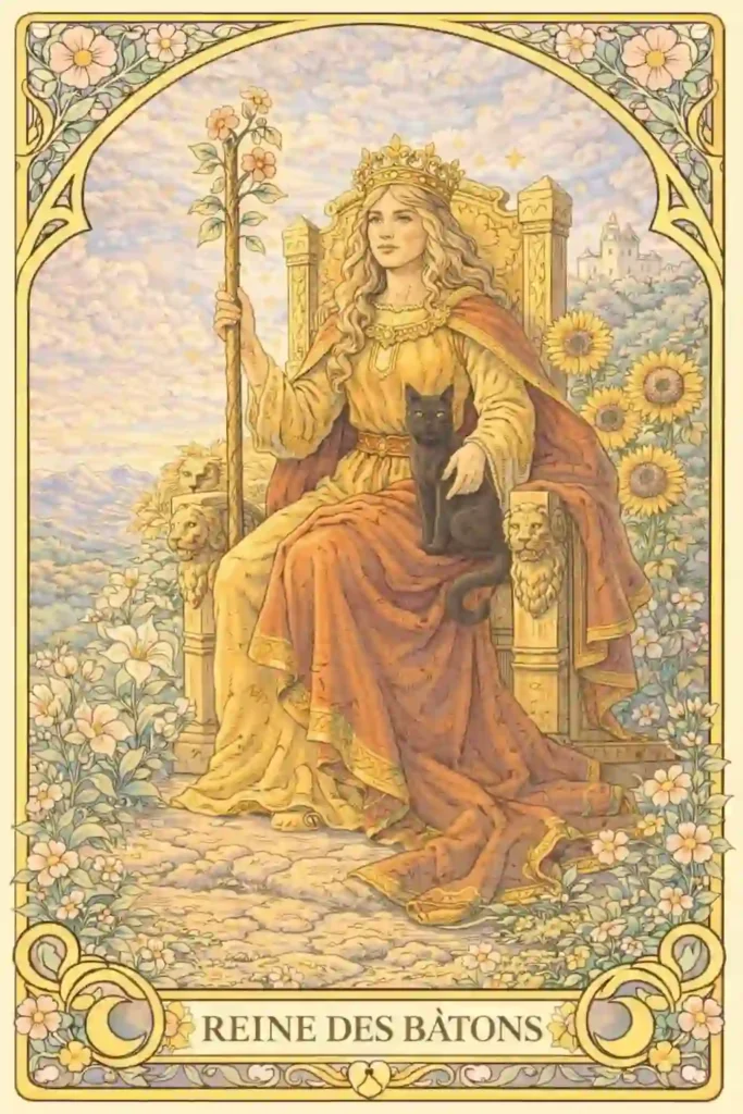 タロット タロット「ワンドのクイーン」の意味|正位置・逆位置・恋愛・仕事運・金運・シンボル・英語読み方